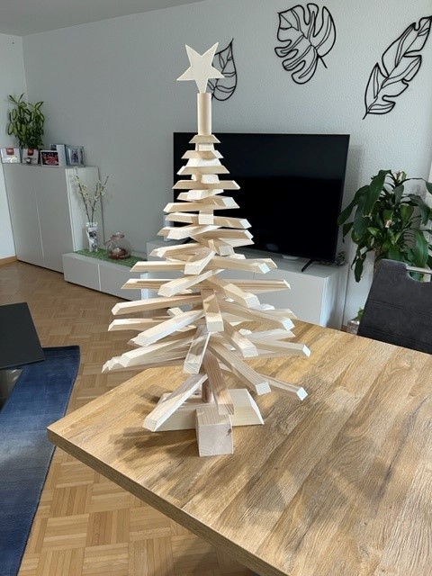 Alle Latten sind einzeln beweglich, so kann der Baum auch platzsparend versorgt werden, wenn im Hochsommer keine Weihnachtsstimmung aufkommen soll.